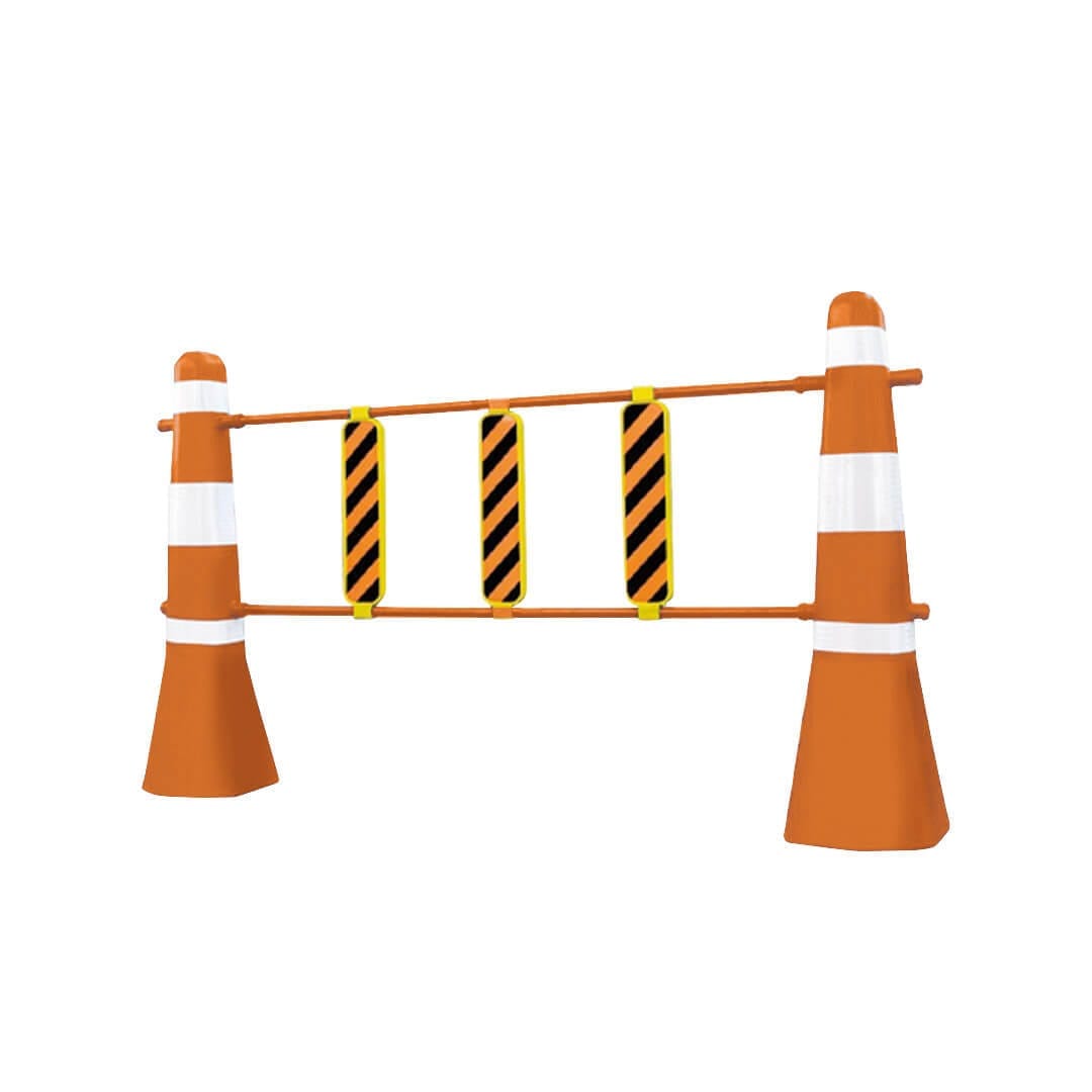 Descripción: Fabricado en polietileno de media densidad, resistente al medio ambiente y cambios de temperatura, protección contra rayos U.V. Medidas: Alto: 180 cm. Base inferior: 50 cm. Ancho inferior: 40.0 cm. Color: Naranja. Con tres paletas de 3mts de largo.