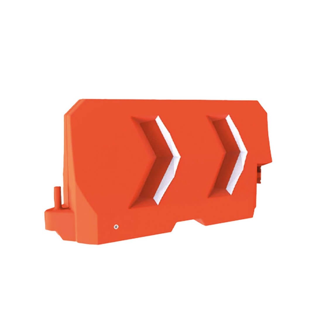 Descripción: Barrera de protección vial fabricada en polietileno altamente resistente. Color: Naranja. Anidable en 25 piezas. En caja seca de 53 pies, se pueden almacenar hasta 1300 barreras, canalizando 1950 metros lineales. Ensamble fácil y rápido. Medidas: Largo: 157 cm. Alto: 75 cm. Ancho: 40 cm. Incluye cuatro reflejantes grado ingeniería prismático.