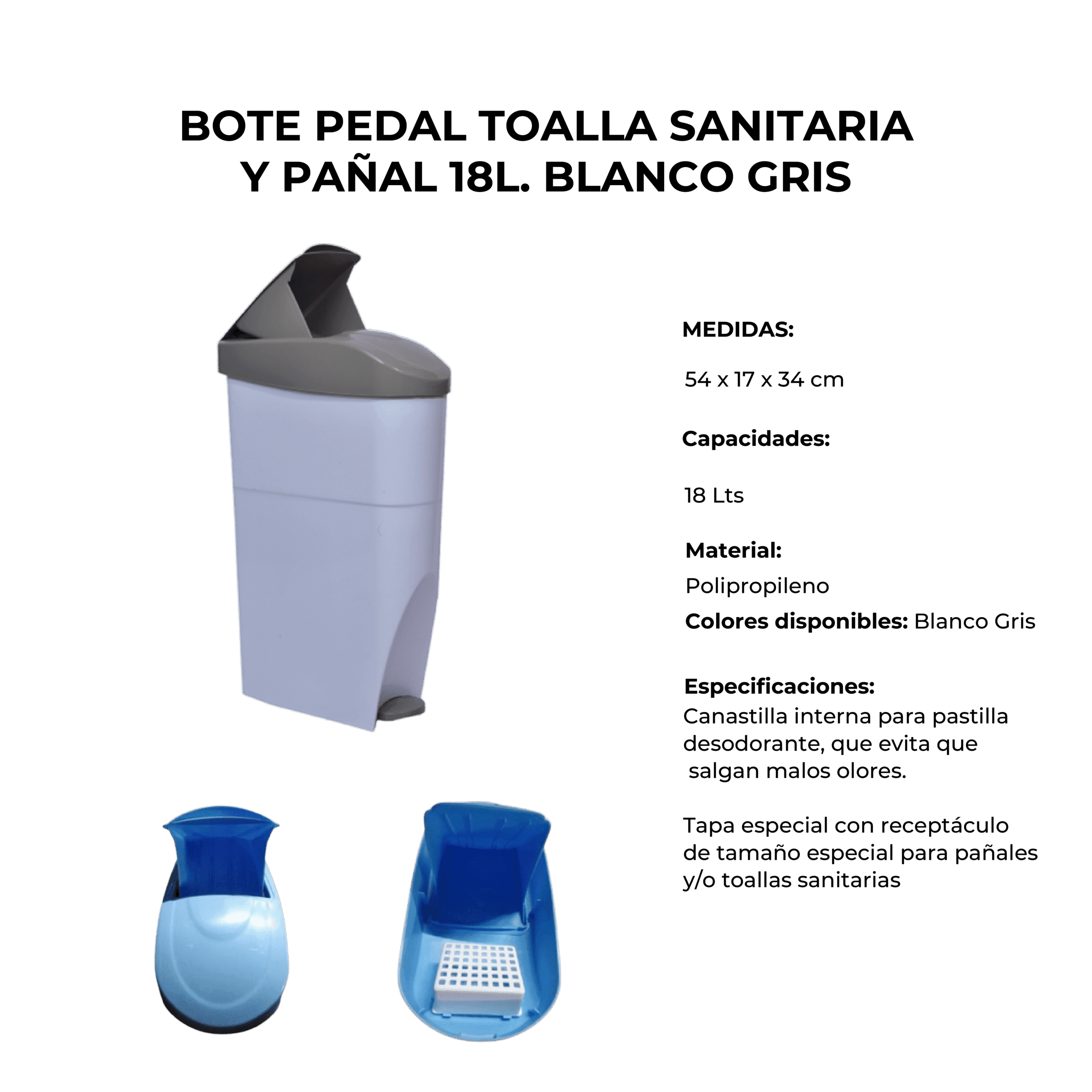 Bote Pedal Toalla Sanitaria Y Pañal 18L. Blanco Gris