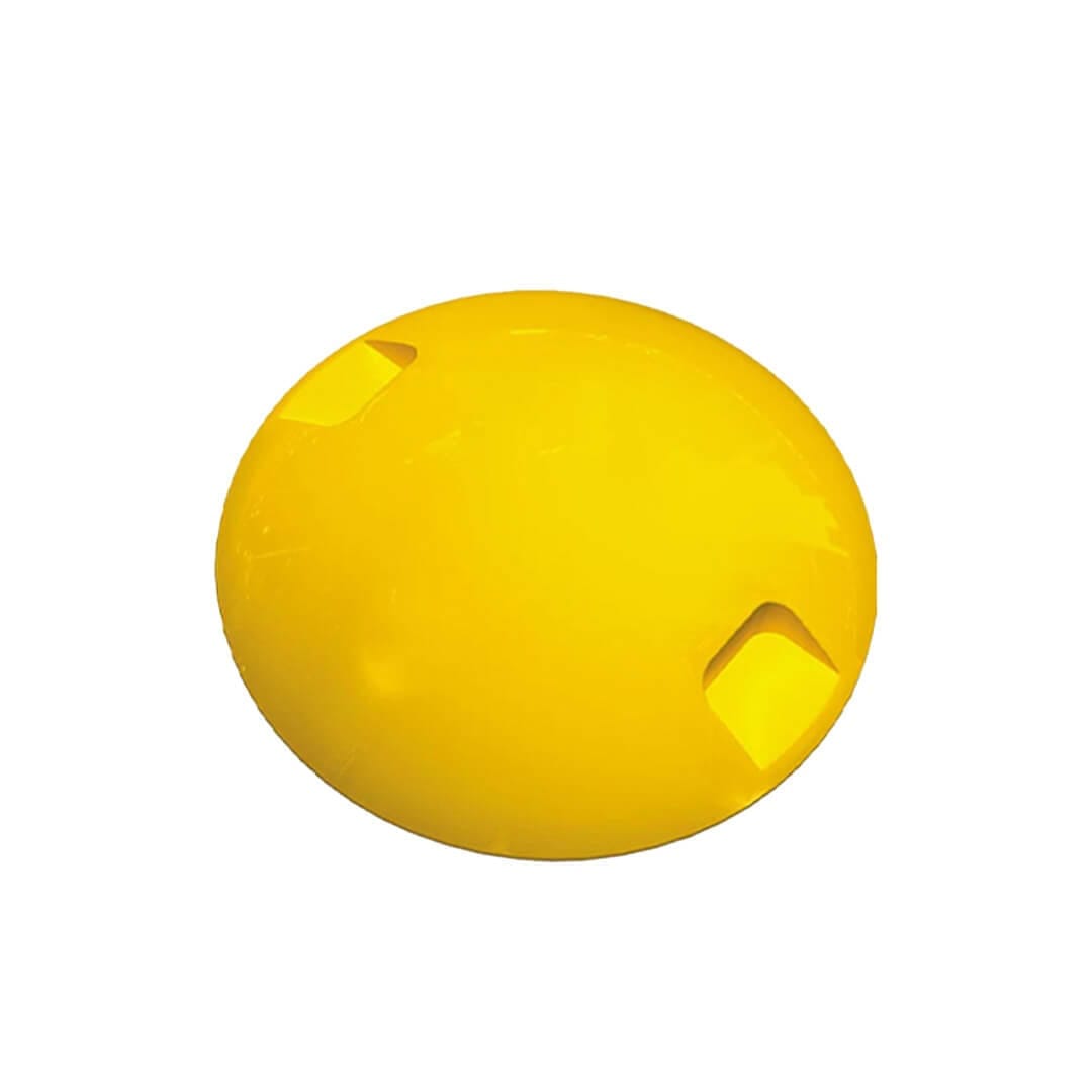 Descripción: Botón fabricado de plástico abs. Alta resistencia a impactos. Ideal para señalar zonas peatonales, cruces y vueltas. Color: Amarillo. Medidas: diámetro: 10.1 cm. altura: 2.1 cm. Caja con 30 piezas.